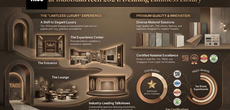 TACO returned to IndoBuildTech Expo 2024 with a bold, customer‑first statement: creativity thrives when people can touch, feel, and live with design. Across five bustling days at ICE BSD City, the Indonesian interior solutions brand transformed its booth into an immersive, high‑touch experience that fused luxury atmosphere with hands‑on discovery—an appreciation letter to loyal customers […]